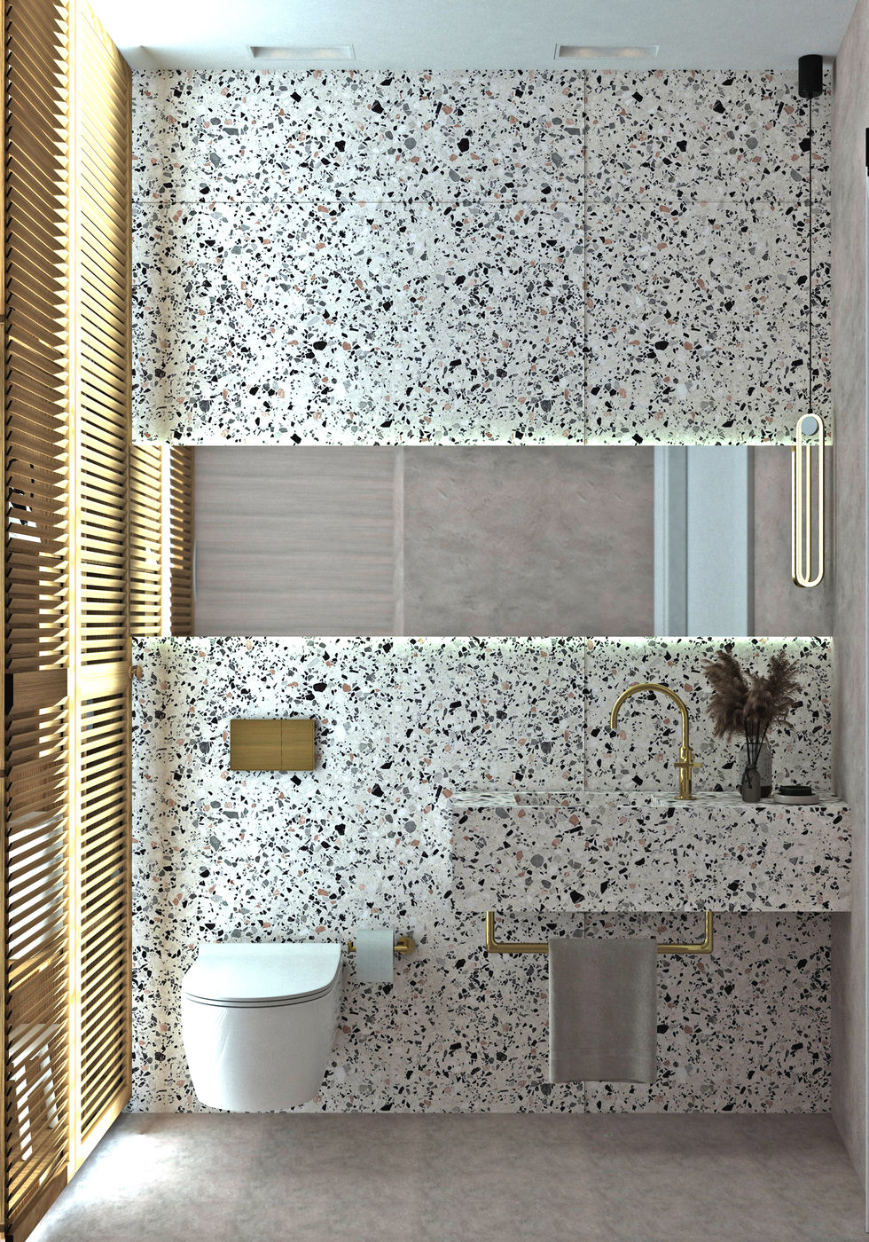 Οι διαφορετικές υφές και τα επίπεδα αλληλοσυμπληρώνονται, προσδίδοντας βάθος χωρίς να διαταράσσουν την ηρεμία του χώρου.